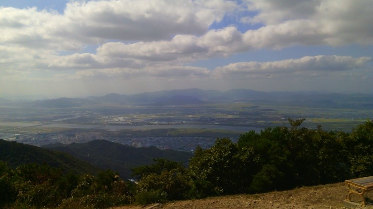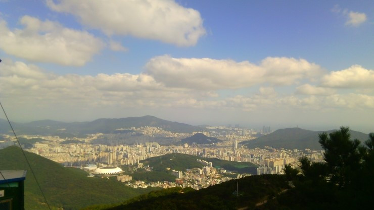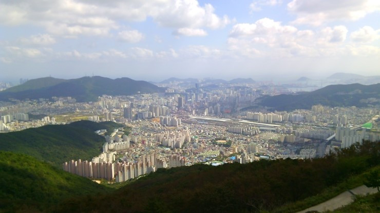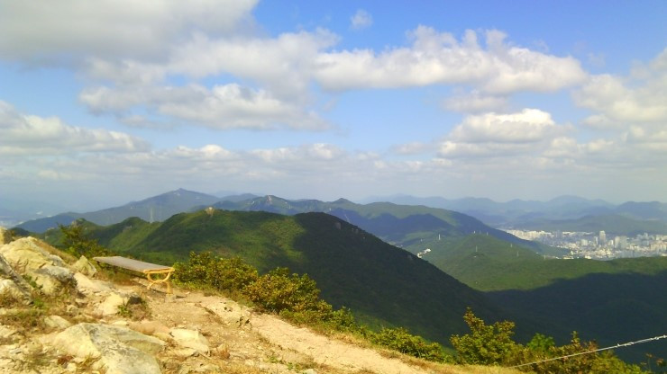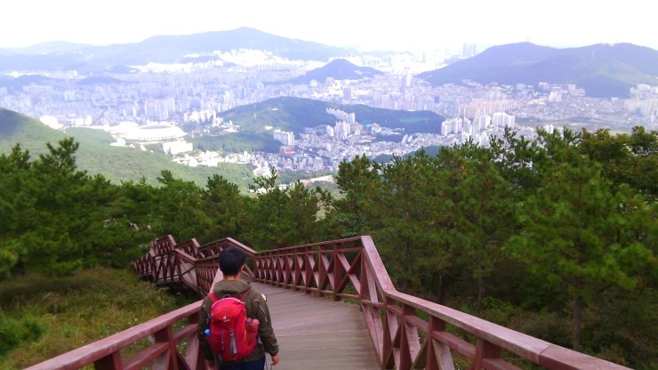 임도 삼거리에서 정상쪽으로 올라간다. 정상 밑 헬기장 전망대에서도 부산이 한 눈에 전부 들어온다.