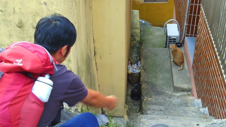 뚱~ 해보이는 퉁퉁한 고양이가 우리를 이상하게 쳐다본다.