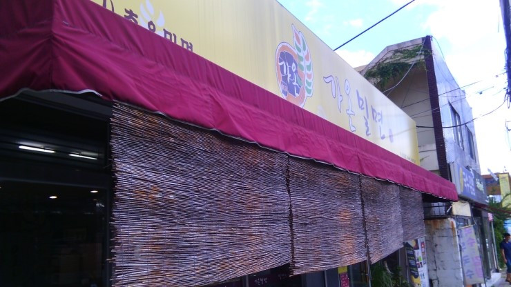 초연중학교 옆으로 내려왔다. 바로 근처에 가온밀면 본점이 있어서 들어가서 늦은 점심을 해결한다.