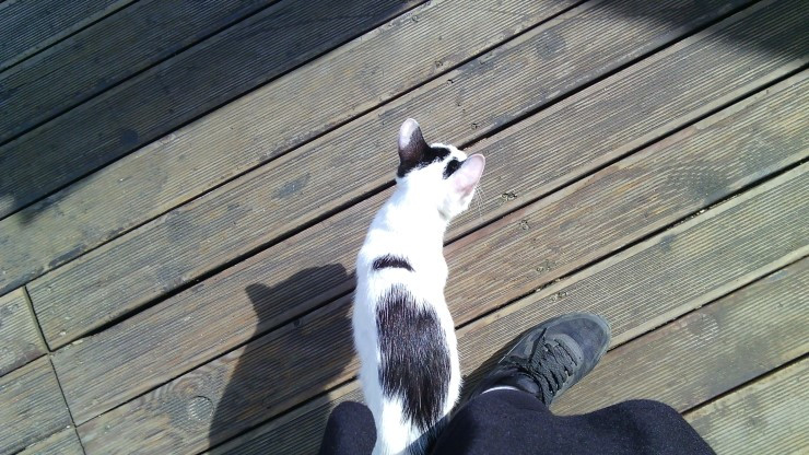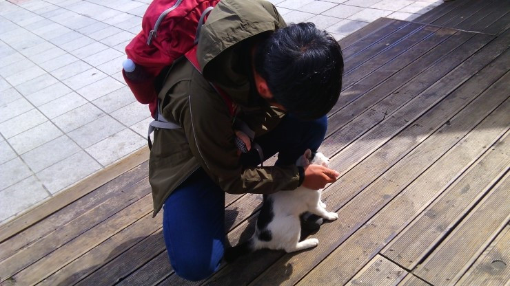 해운대 입구의 스포츠 매장 앞에서 넉살 좋은 고양이가 아무한테나 애교를 부린다.