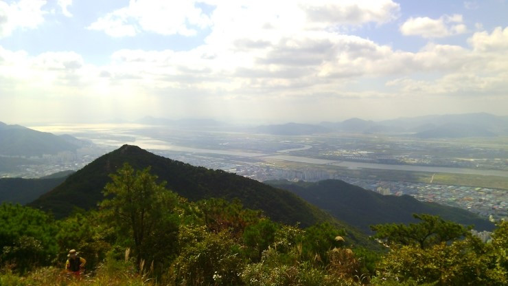 저 밑에 낙동강 하구둑, 을숙도도 보인다.
