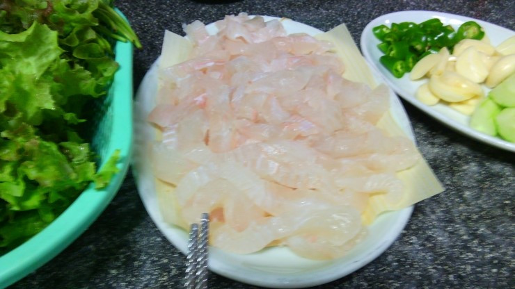 할머니께서 약주하신 손을 덜덜 떨면서 광어회를 느릿느릿 썰어오신다. 날카로운 칼에 다치지 않을까 염려되지만 오랜 경력의 전문가이시다.