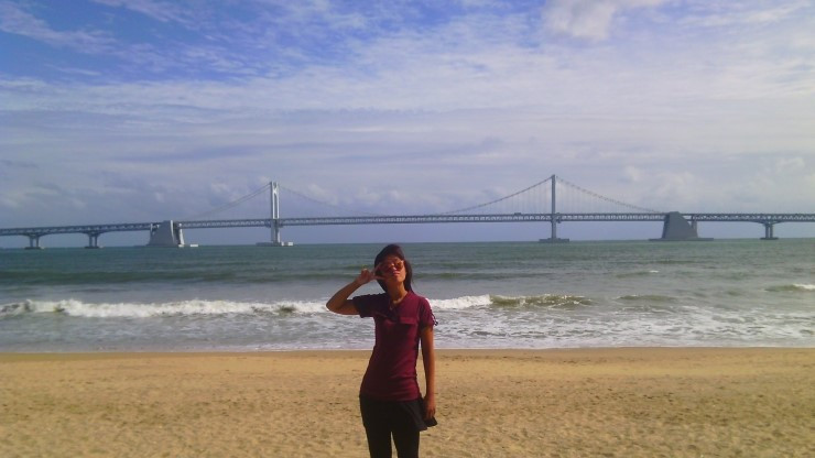 아직 기차 시간까지 시간이 조금 남아서 광안리 해변도 산책한다.