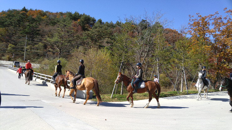 입구 근처를 구경하고 있는데 한 무리의 말들이 지나간다. 승마 체험은 트랙을 한 바퀴 도는 것이니 그건 아닌 것 같고 별도의 승마클럽을 같이 운영하나보다.
