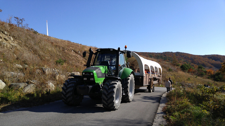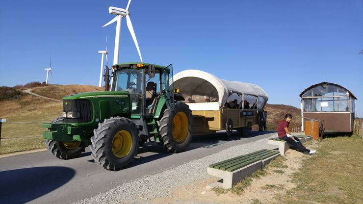 이곳이 하늘목장의 정상이다. 많은 사람들이 왕복으로 매표하고 정상에서는 걸어서 내려간다. 하지만 빈 트랙터 마차를 정상에서 매표해서 타고 내려갈 수는 없다.