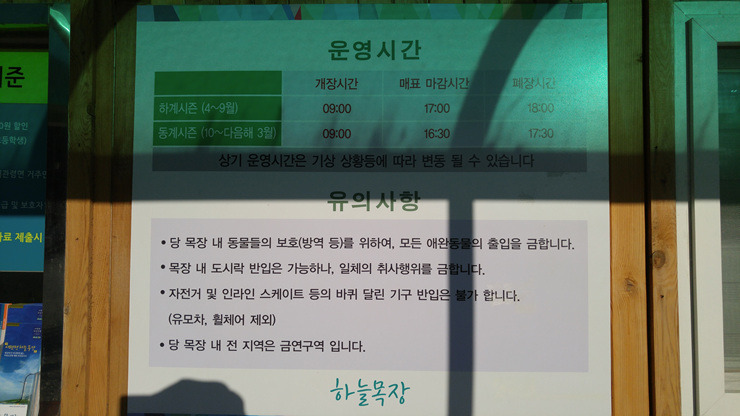 사실 동해 전망대가 있는 삼양 목장에 가볼까 하고 있었는데, 한국관광공사 이벤트에 응모했더니 하늘 목장 입장권을 주길래 겸사겸사 다녀왔다.