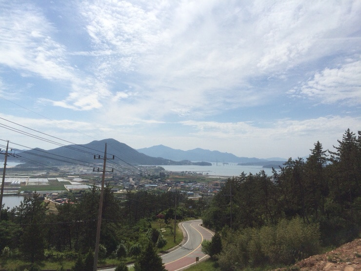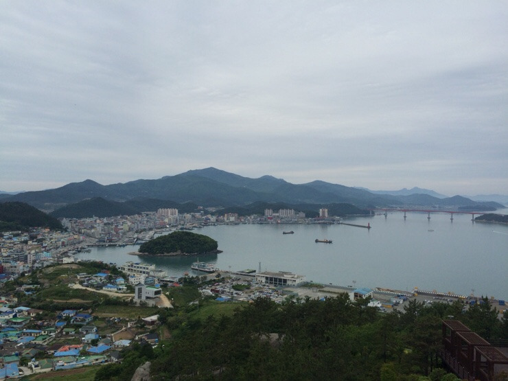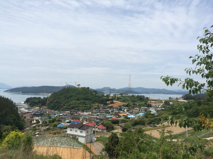 시간도 충분하고 배 타는 곳이 운영하지 않을까 하고 혹시나 하는 마음에 독고령을 올라갑니다. 독고령 정상에서 보는 신지면입니다.