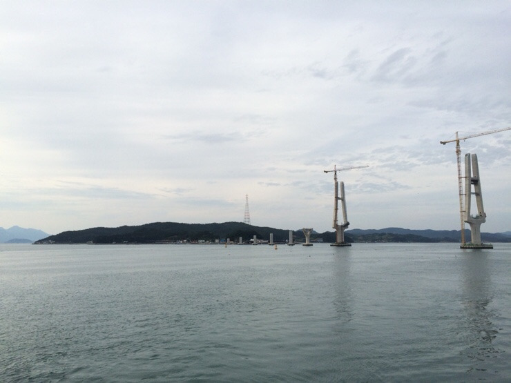 여기서부터는 신지도입니다. 오늘의 목적지인 고금도가 건너편에 보이고 두 섬을 연결하는 다리가 한창 공사 중입니다.