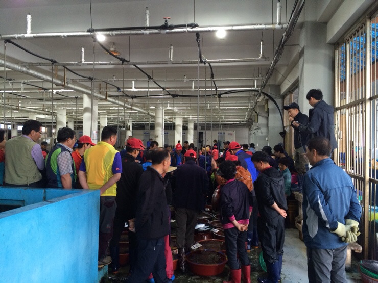 가는 길에 있는 어시장에서는 한참 경매가 이루어지고 있습니다.