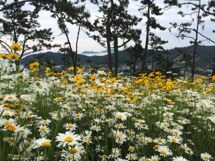 꽃 무더기 뒤쪽으로 망남리가 보입니다. 망남리 옆으로 언덕길을 타고 넘어갈 겁니다.
