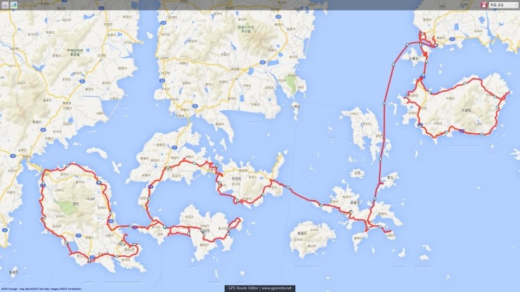완도 - 신지도 - (배편) - 고금도 - 조약도 - (배편) - 금일도 - (배편) - 녹동 - 소록도 - 거금도 - 소록도 - 녹동