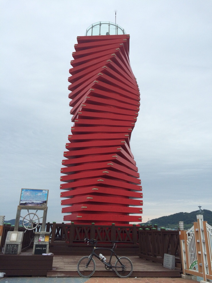 완도 타워는 유료 입장으로 엘리베이터를 타면 전망대까지 갈 수 있습니다. 관광객은 없는 시간이지만 날도 흐리고 자전거를 놔두고 올라가긴 싫어서 그냥 지나갑니다.