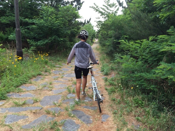 송지호 근처의 동해안 자전거길은 도로용 자전거들은 타기 힘든 정도의 비포장이다.