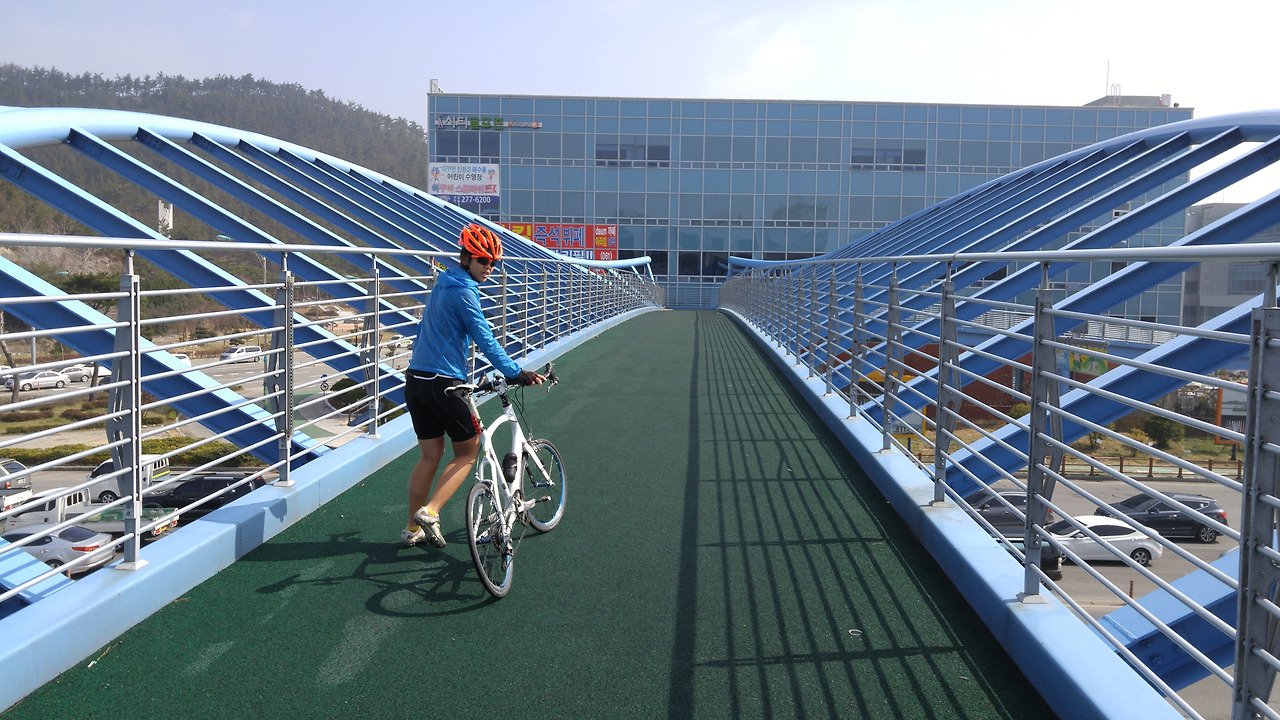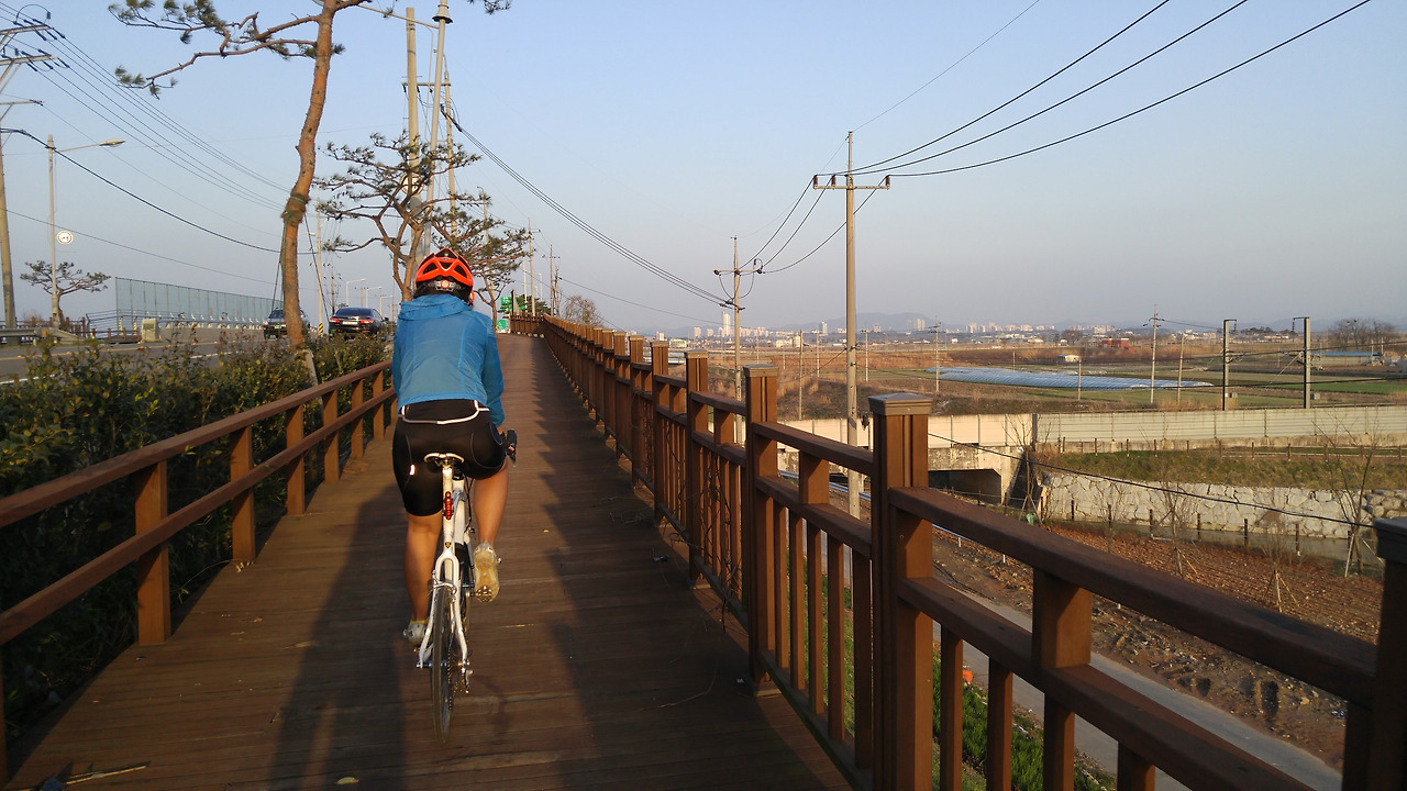 하지말라는 것은 안 합니다. 육교를 건너서 뚝방길 반대편의 자전거 도로로 갑니다.