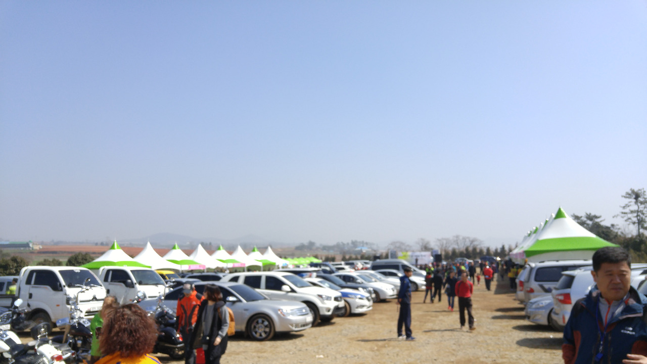 산이면 읍내를 지나서 계속 달리다 보니 축제장 들어가는 길목에서 경찰들이 수신호로 안내하고 있습니다. 매실농원이 있는 예정리로 갑니다. 자동차는 주차장에 세워두고 셔틀버스를 타야 하는데 자전거는 그냥 축제장까지 갈 수 있습니다. 물론, 봄나들이객들이 많으니 마을길 입구부터는 걸어갑니다. 조금 걸어 올라가니 멀리 하얀 매화밭이 보입니다.