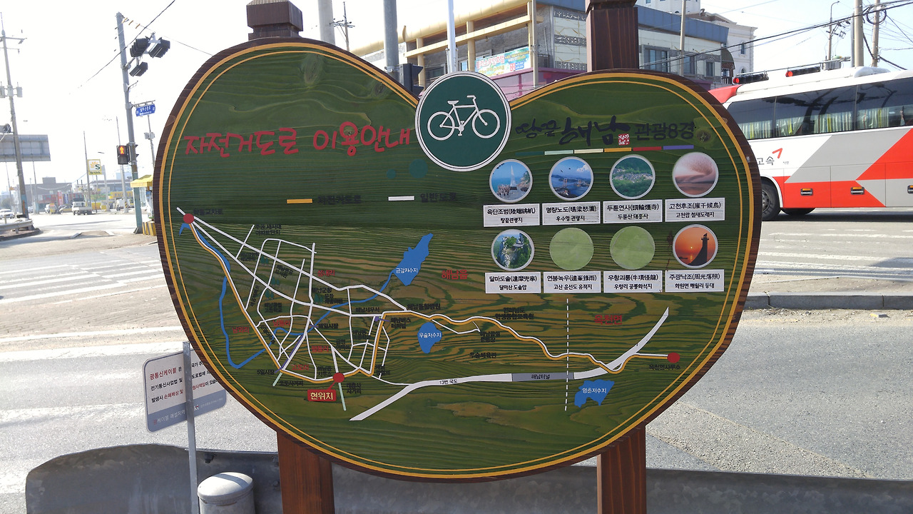 버스터미널 근처까지 시내를 둘러서 자전거길이 나있길래 편하게 타고 갑니다.