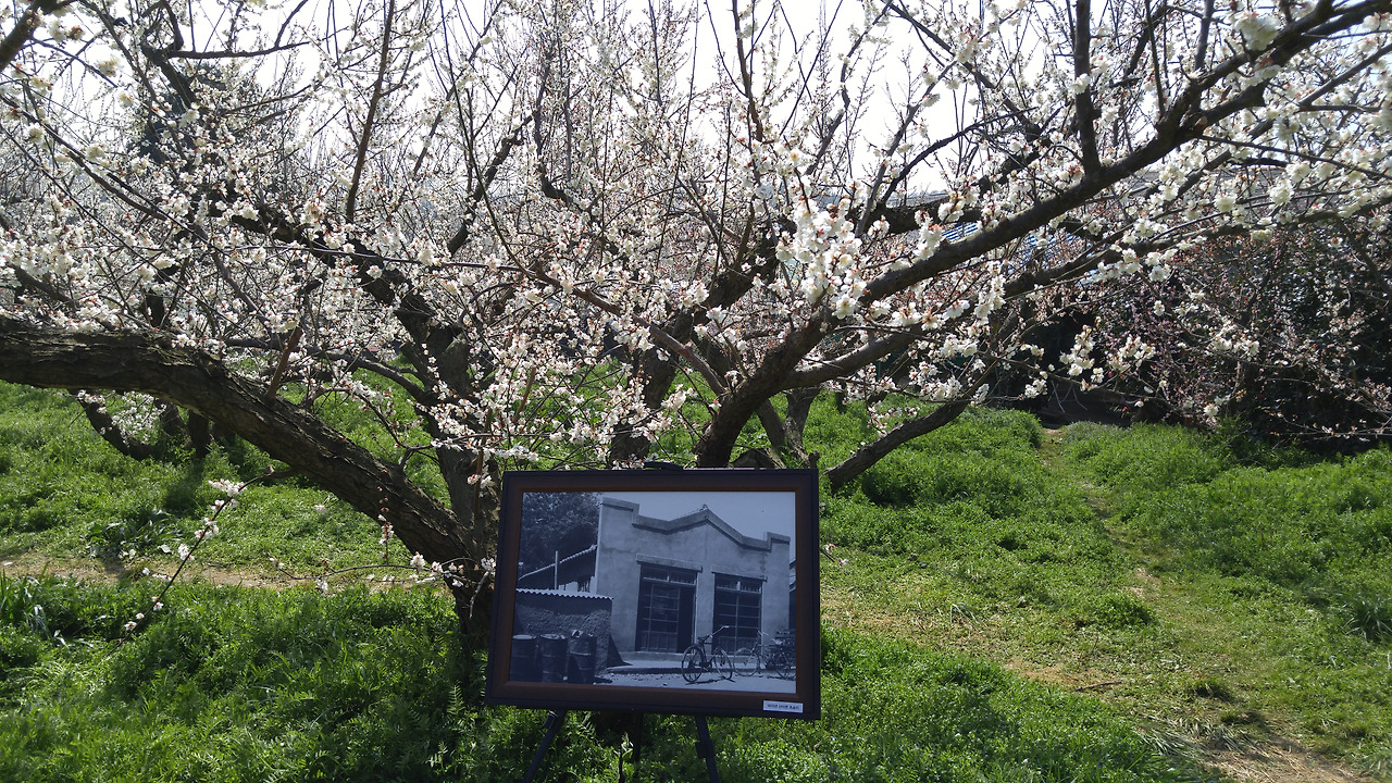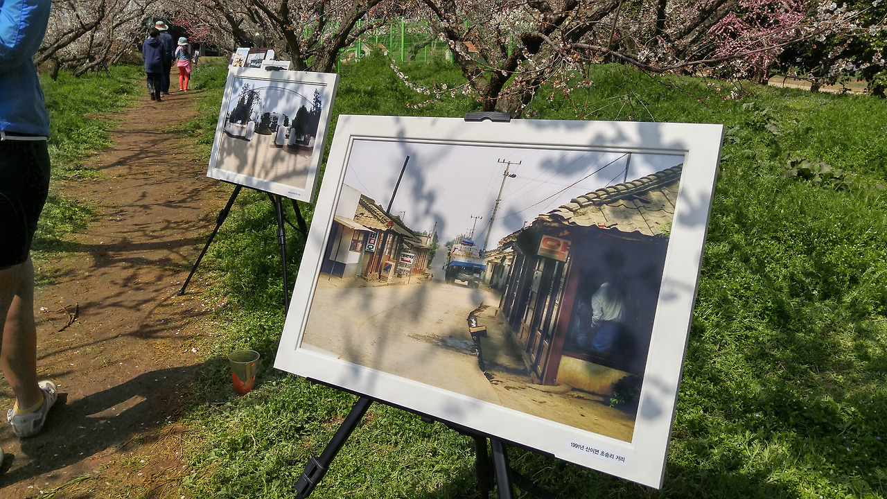 제 2축제장으로 가보니 매화나무 터널 아래로 마을의 예전 모습들을 담은 사진을 전시해놨습니다.