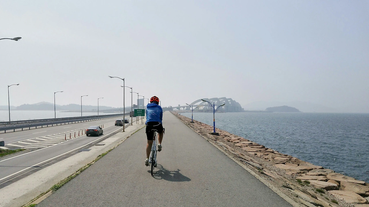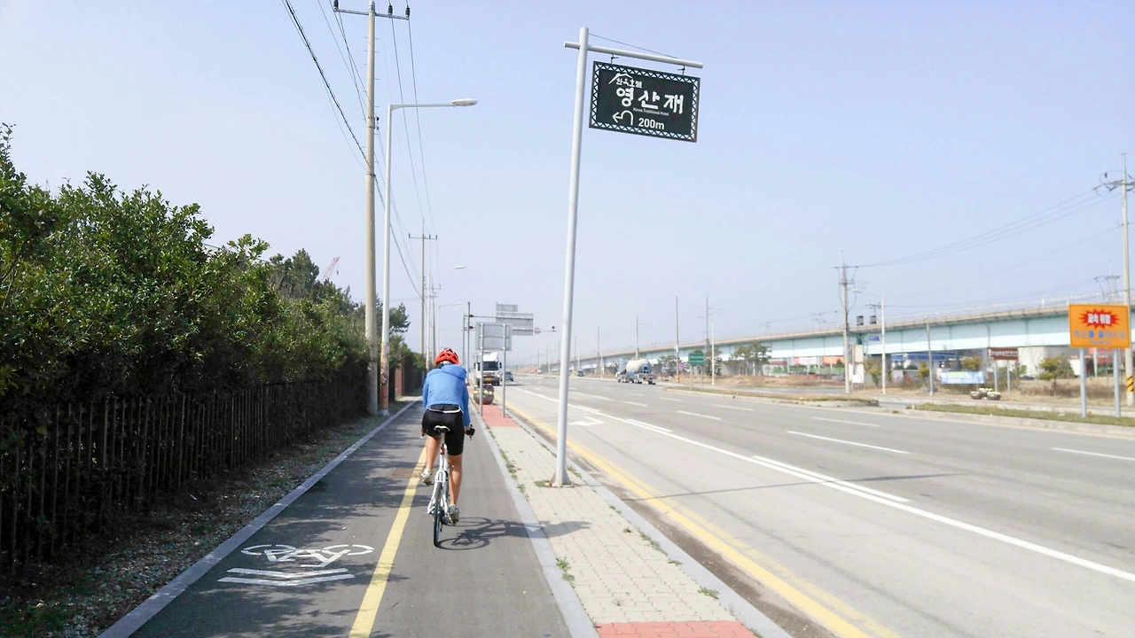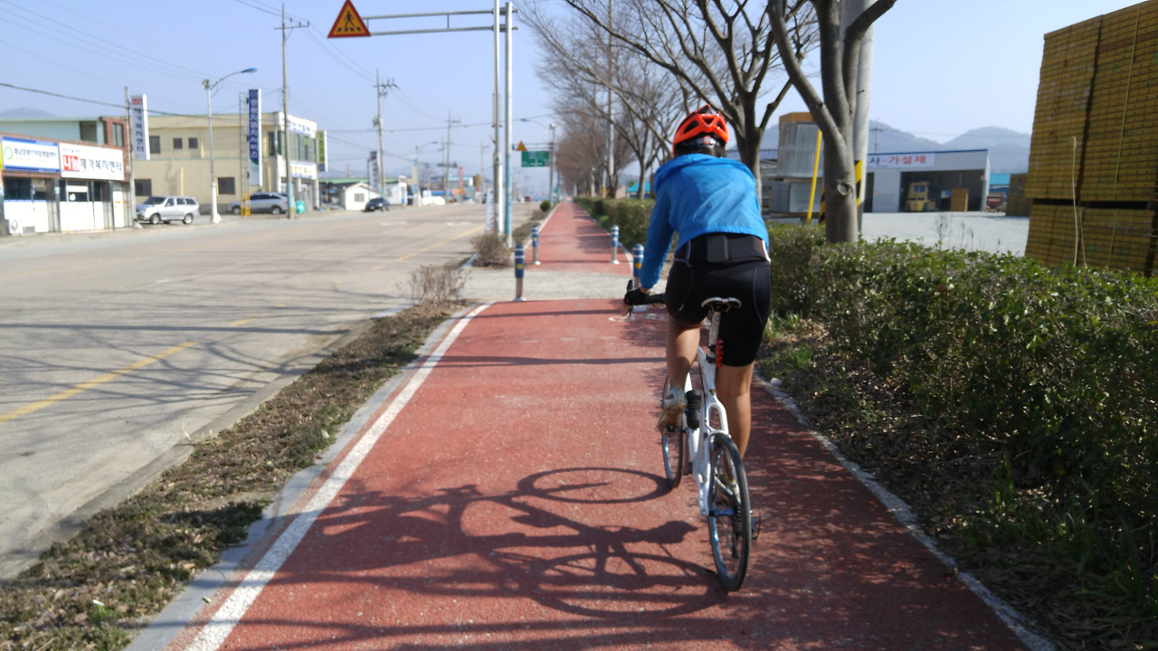 공단 지역의 특성상 큰 차량들이 많이 지나다니고 일반 차량들도 엄청난 속도로 달리는데 차도와 완전히 분리된 자전거길이 잘 되어있으니 안전하게 갈 수 있습니다.