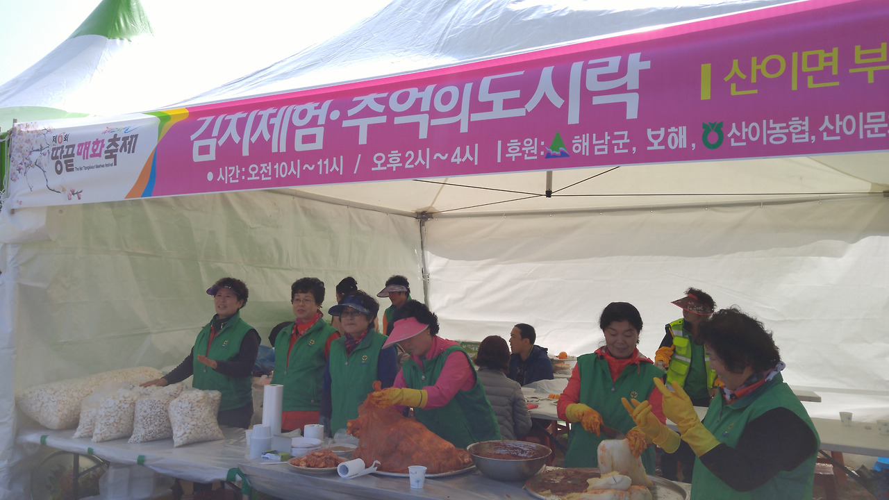 해남 절인 배추가 유명하니 한쪽에선 한참 김치를 만들고 있습니다. 싱싱한 해남 김치도 맛봅니다.