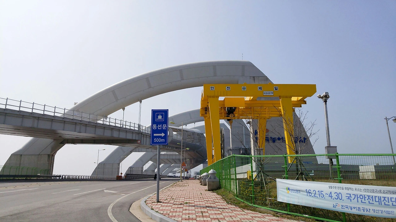 영산강 하구둑입니다. 자전거길이 그럭저럭 잘 되어 있습니다.