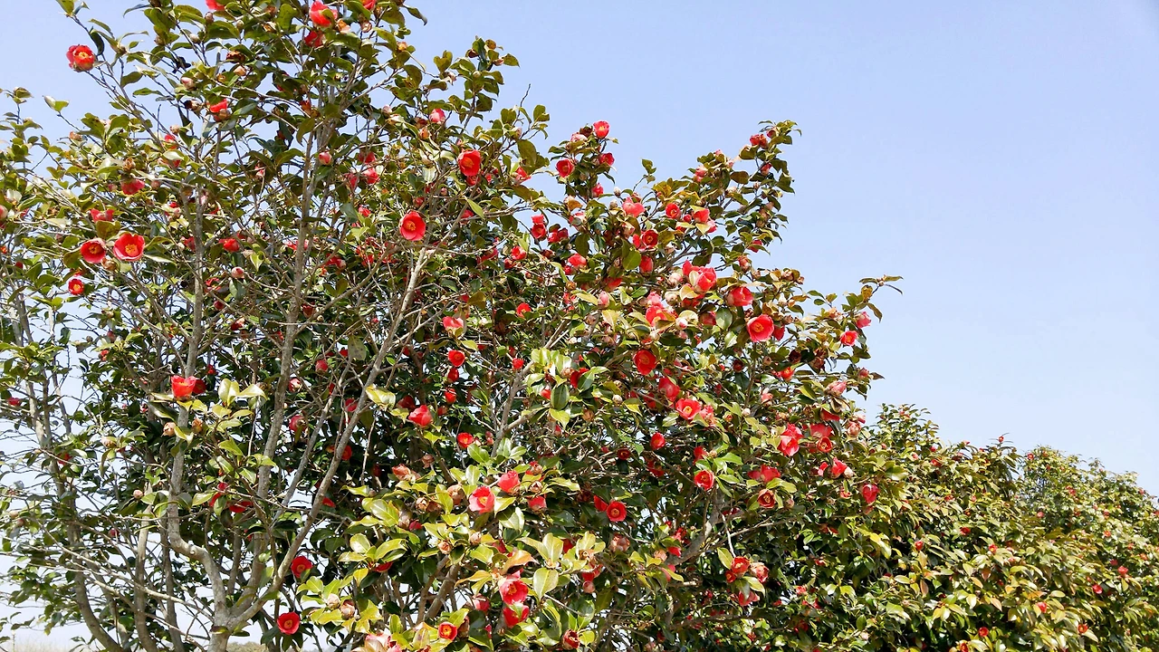 매화밭 가는 길은 동백나무들이 울타리 역할을 하고 있습니다.