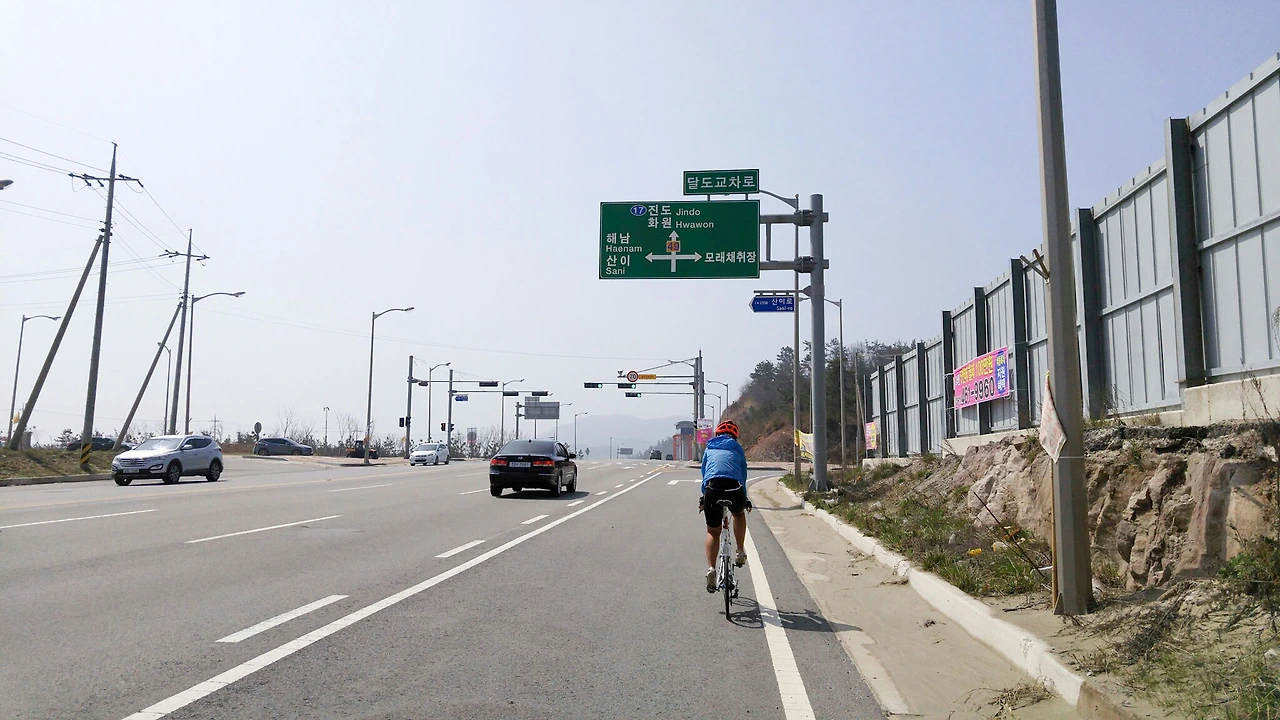 이제 해남 버스터미널까지 달립니다. 조금 차가운 바람이지만 뒤에서 밀어주어서 어렵지 않게 달립니다.