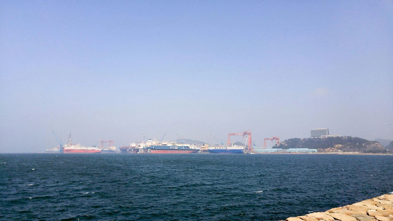 영암금호 방조제에서 목포항 입구 쪽으로 현대삼호 중공업이 보입니다. 거대한 배들이 있네요.