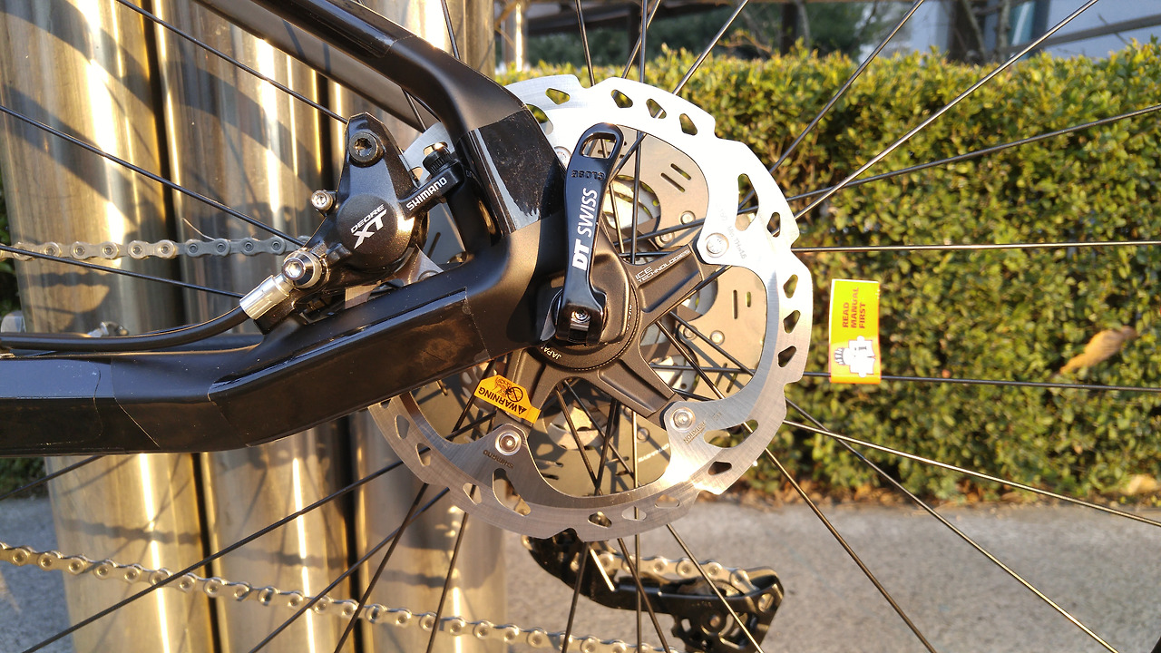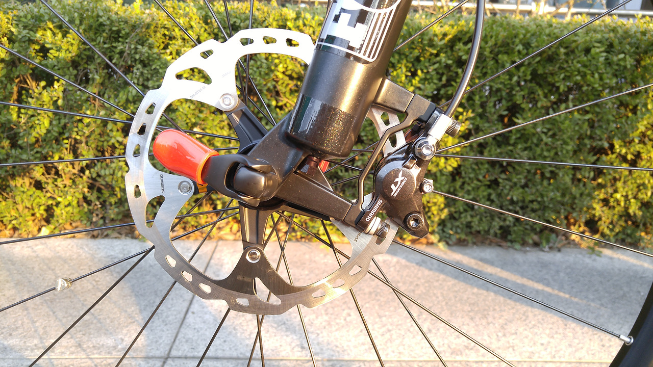 급경사를 오르내리는 산악자전거는 브레이크의 중요도를 무시할 수 없다. 포스트 마운트 방식의 최신형 XT 유압식 디스크 브레이크가 앞뒤로 장착되어 있다.