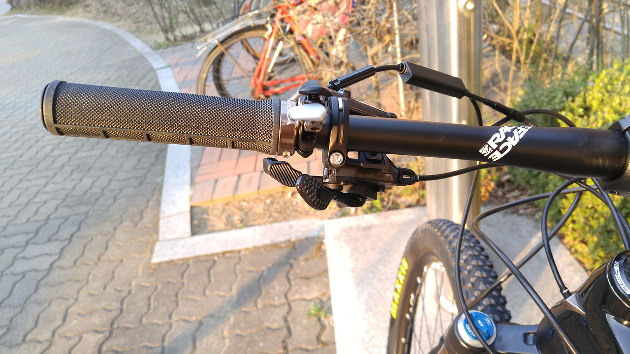 핸들바, 싯포스트, 핸들스템 등은 모두 자전거 부품 전문 회사인 레이스페이스 제품이다. 자이언트 등의 일부 브랜드처럼 자사 브랜드 부품을 쓰는 것보다 이렇게 전문 컴포넌트 회사 제품을 사용하는 것을 개인적으로 선호한다. 오베아 락그립도 자전거에 잘 어울리는 은은한 색상이라 마음에 든다.