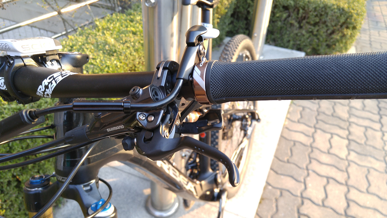 왼쪽 핸들바에는 듀얼 락아웃 레버와 변속레버, 그리고 브레이크 레버가 있다. 710mm 핸들바에 장착되는 것이 얼마 없으니 공간이 매우 넓다. 자전거를 타는 도중에 샥 기능을 조절할 수 있는 락아웃 레버는 한 번에 앞뒤 샥을 모두 잠글 수 있고 3단계로 조정이 가능해서 도로 라이딩에 도움이 될 것이다.