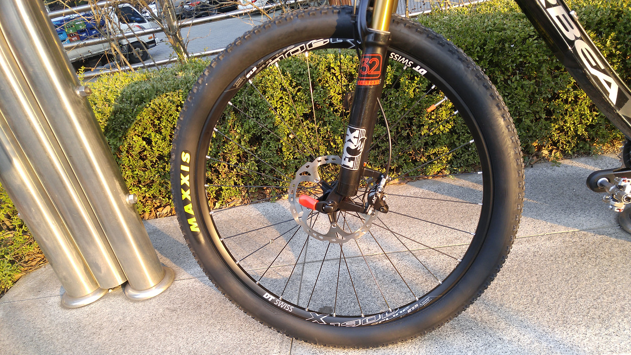 앞뒤 휠셋은 27.5인치(650B) 규격의 DT1900 휠셋이다. 최상급 휠셋은 아니지만 당장 쓰기에 부족함이 없는 좋은 휠셋이다. 휠셋은 요즘 XC 바이크에 많이 사용하는 앞 15mm 액슬 방식, 뒤 일반 QR 방식으로 되어 있다. 타이어는 맥시스의 XC용 타이어인 이콘 2.20로 트레드는 임도용으로 쓰기에 딱 알맞아 보인다.