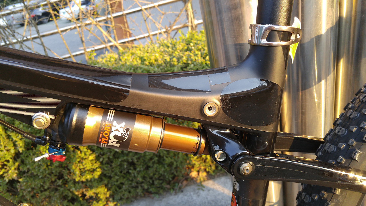 유명한 샥 전문 회사인 폭스사의 최신 샥업소버(샥)들이 앞뒤로 장착되어 있다. 요즘 산악자전거들이 대부분 그렇듯이 앞 샥은 스티어러 튜브(프레임과 연결되는 튜브)의 위와 아래의 굵기가 다른 테이퍼드 방식이다.