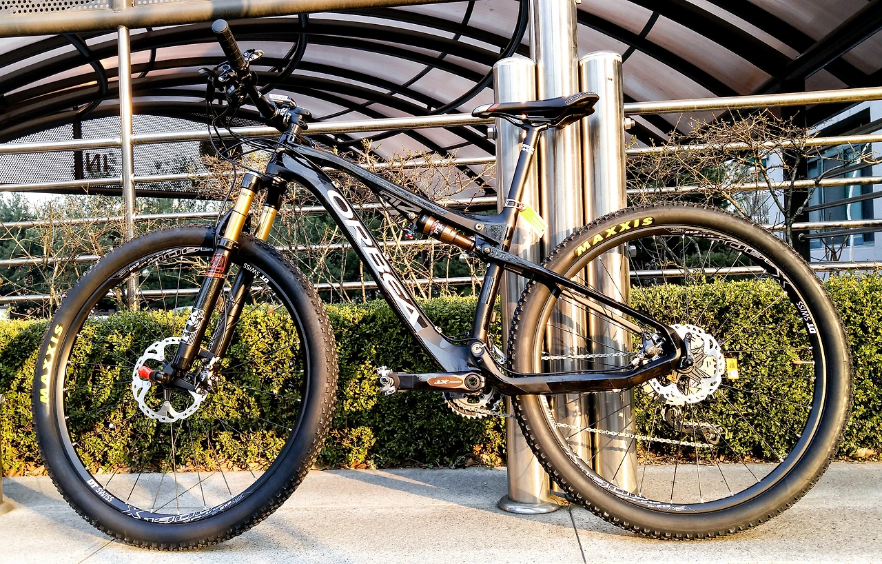 오베아의 오이즈 카본 프레임은 최경량은 아니지만 충분히 가볍고 튼튼하다. 오이즈 M20의 전체 무게는 10.5kg(페달 제외) 정도로 풀서스펜션 산악자전거로서는 매우 가벼운 편이다. 지니님의 키에 맞춰 오베아의 27.5인치(휠 지름) 산악자전거 중에 가장 작은 S사이즈(15.5인치)를 선택했다. 홈페이지에 나온 공식 권장 신장은 155~170 cm이지만 실제 한국인 체형으로는 165~175cm가 적절해 보인다.