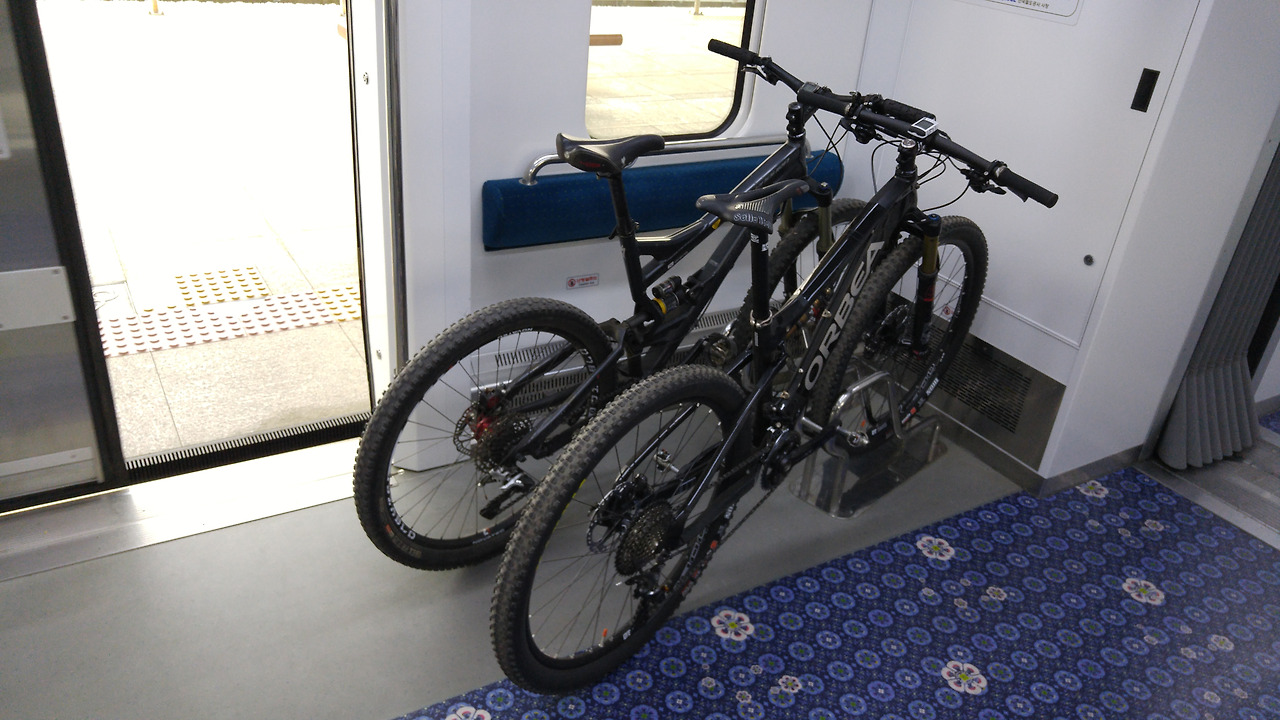 자전거 거치석이 없는 열차는 원칙적으로 접이식 자전거를 제외한 일반 자전거의 휴대탑승이 불가능하여 분해하거나 캐리어백에 담아서 탑승하는 것이 원칙이다.