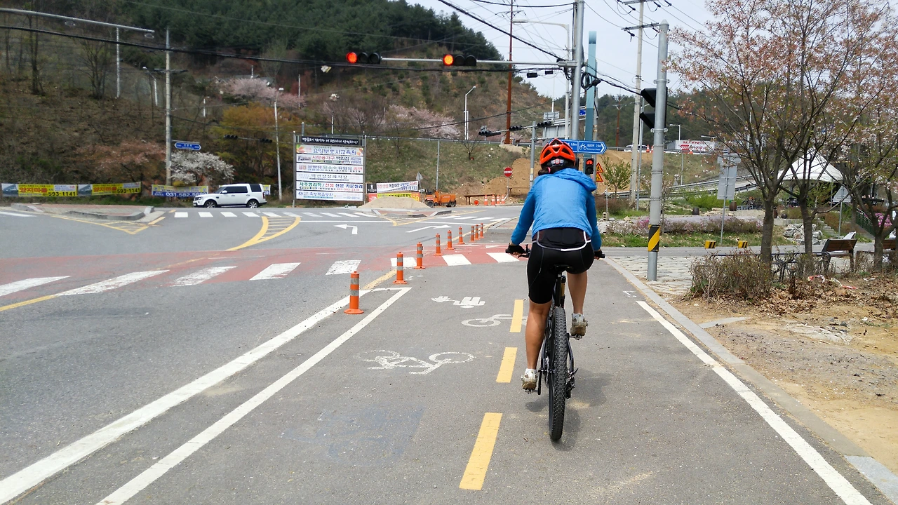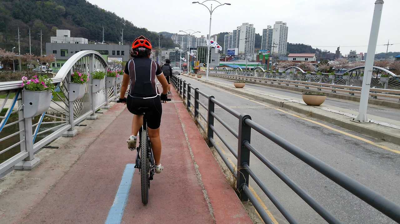 산악자전거를 구입한지는 벌써 몇 주가 되었지만 남쪽 지방의 봄꽃을 즐기는 자전거 여행은 여전히 미니벨로를 이용하였다. 그리고, 드디어 오늘 지니님이 처음으로 산악자전거(XC풀서스펜션)를 탄다.