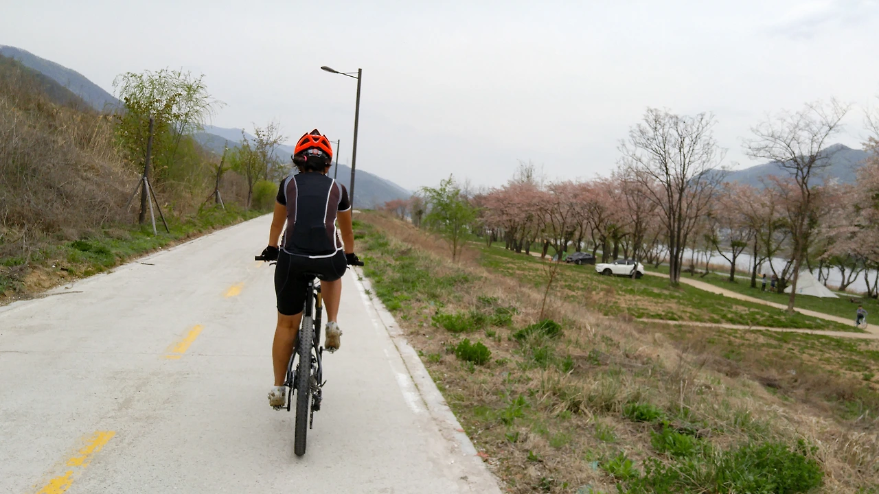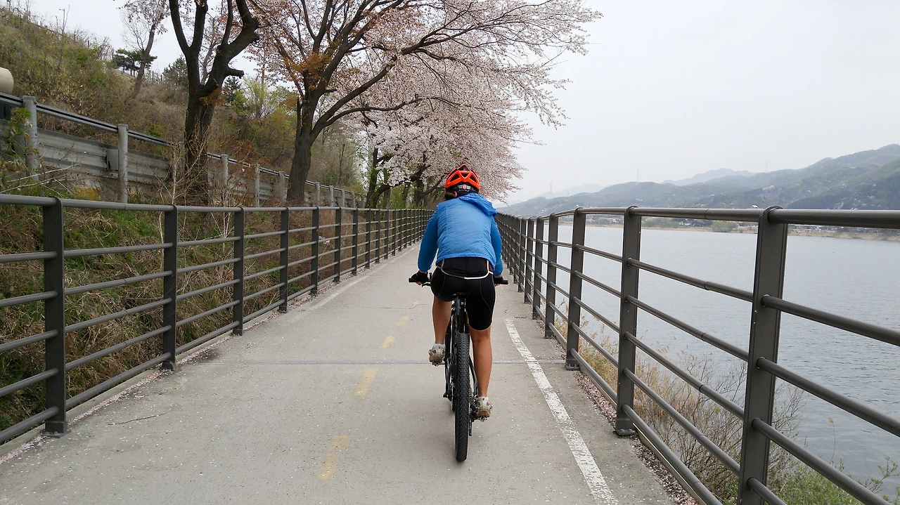 아직 남아있는 마지막 벚꽃길을 달린다. 오후 늦게 비가 온다더니 북한강 자전거길부터는 날이 흐려지기 시작한다.