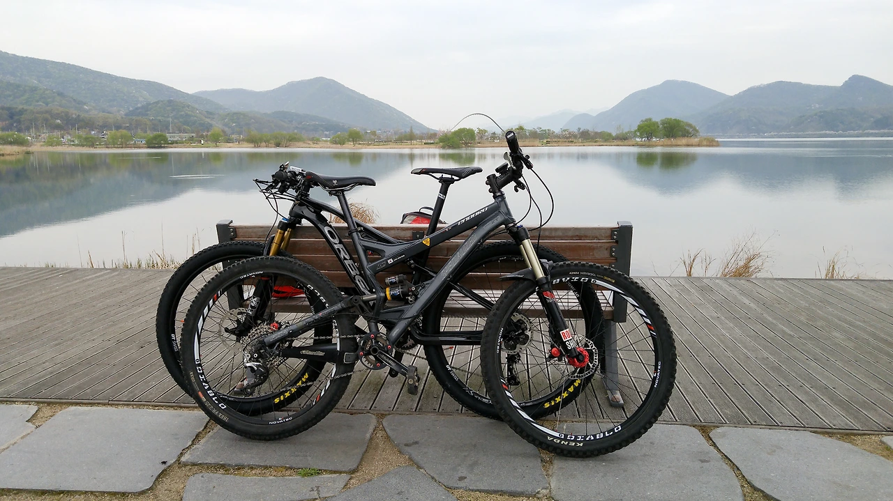 지니님과 나의 산악자전거인 2016년식 오베아 오이즈27과 2006년식 스페셜라이즈드 엔듀로... 보고 있자면 10년의 세월 동안 산악자전거의 많은 부분이 발전했음을 느낀다.