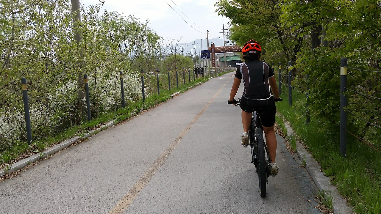 얼마 안 가서 서울과 하남의 경계를 지난다. 불혼바에 익숙해져 있어서 일자바에 적응이 힘들지 않을까 걱정했는데 기우였다. 앞뒤 샥에 의한 꿀렁임(바빙)도 거의 없으므로 샥의 움직임에도 금방 적응했다. 브레이크 레버 각도만 다시 조절해준다.