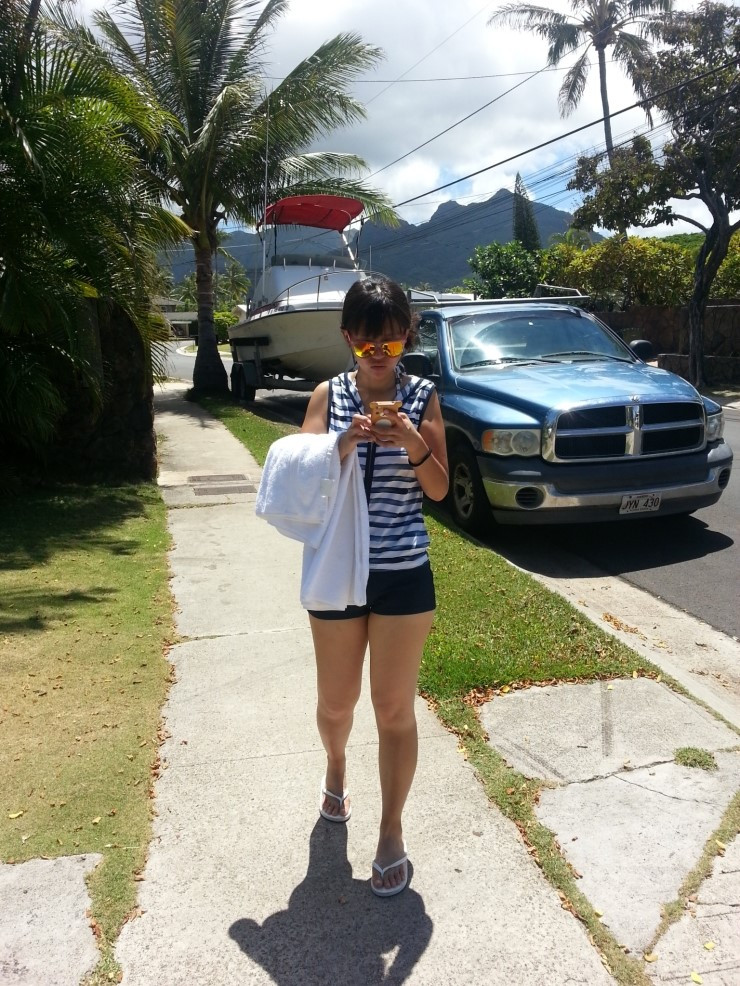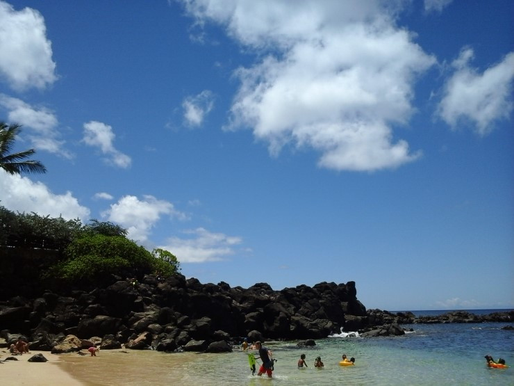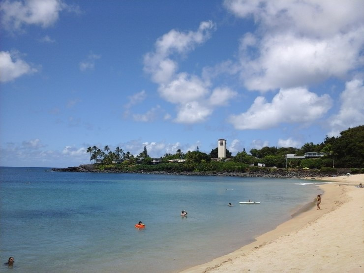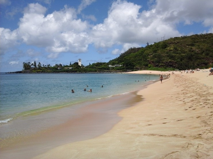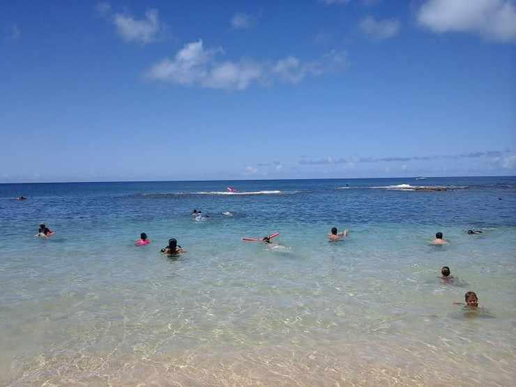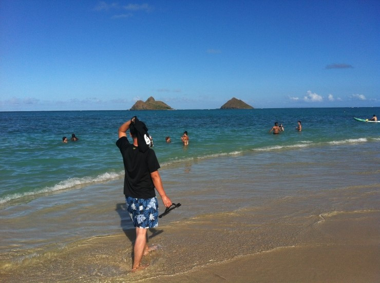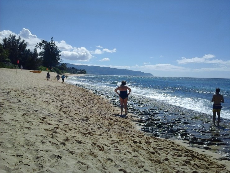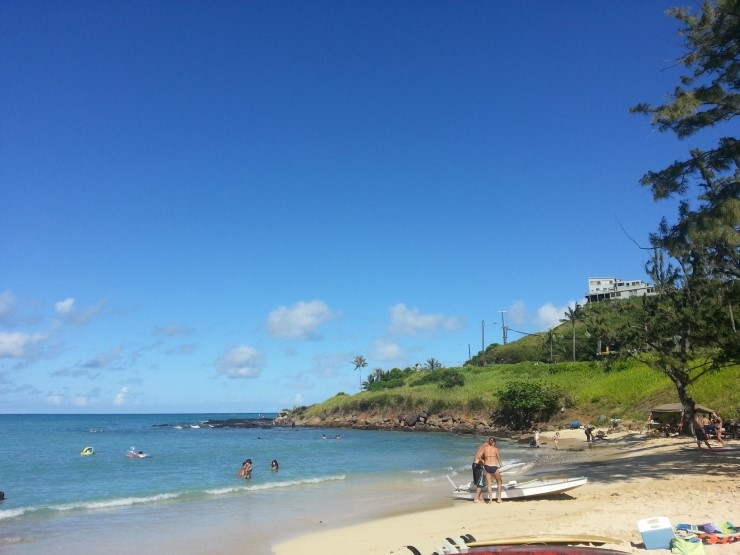 해변까지 은근히 먼 길을 걸어서 하와이에서 와이키키 다음으로 유명하다는 카일루아 해변에 도착한다. 파도가 잔잔하고 수심이 얕아서 가족 단위로 아이들과 놀기에 적당한 곳이다.