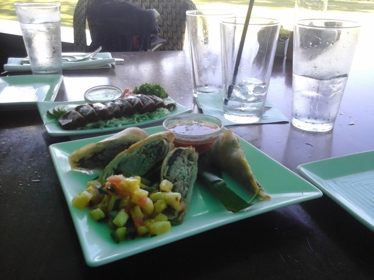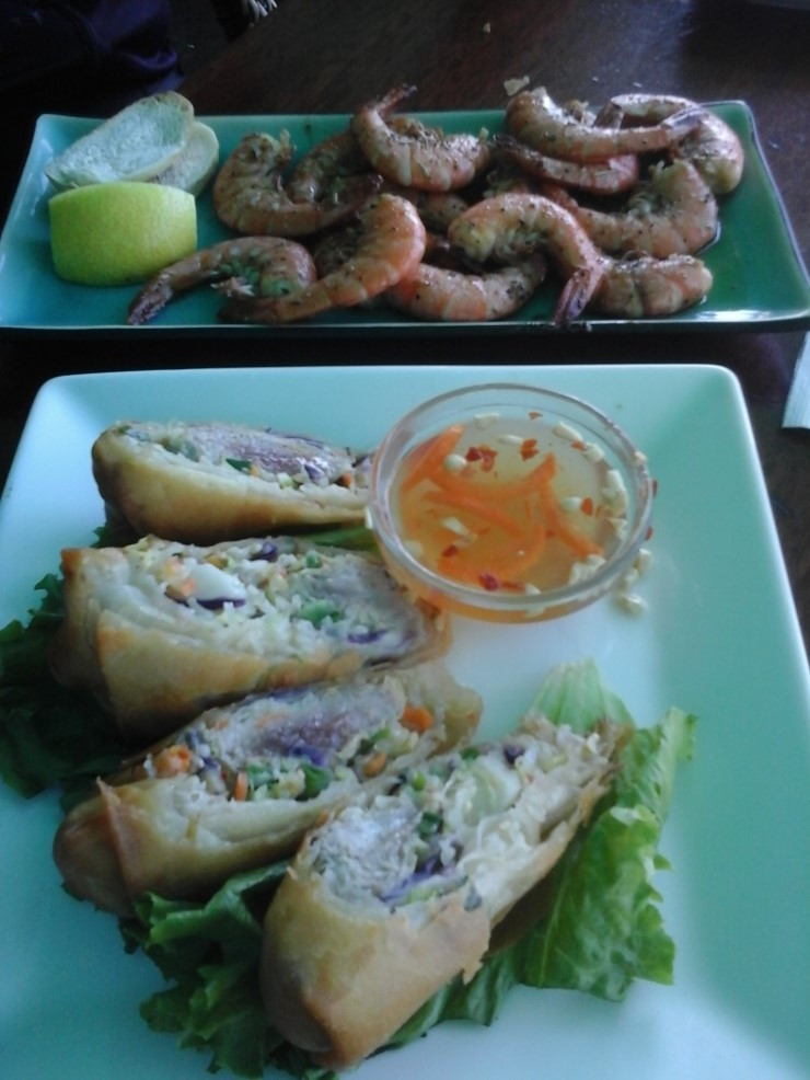 스프링롤, 참치회, 새우 등등을 주문해서 배불리 먹는다.
