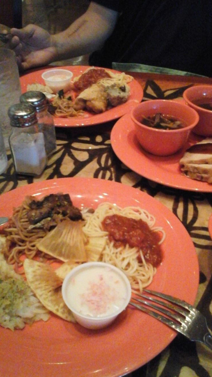 구입한 티켓에 저녁 뷔페가 포함되어 있어 우리나라 샐러드바 정도의 규모로 차려진 뷔페를 먹는다.