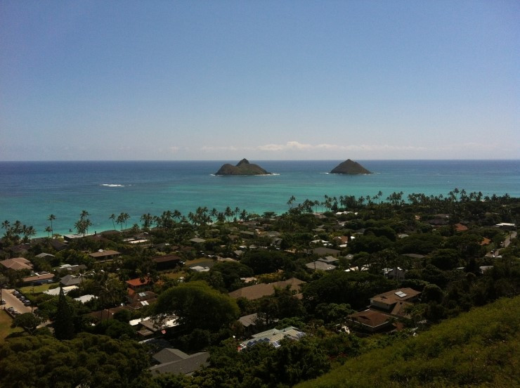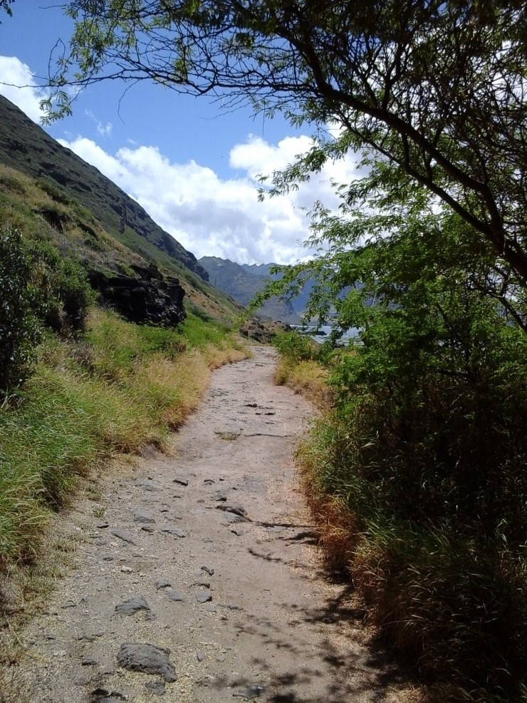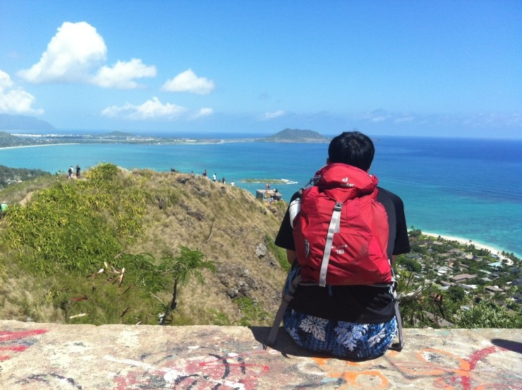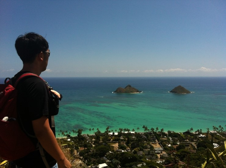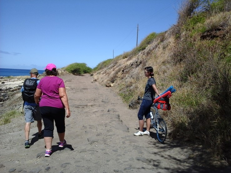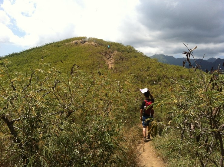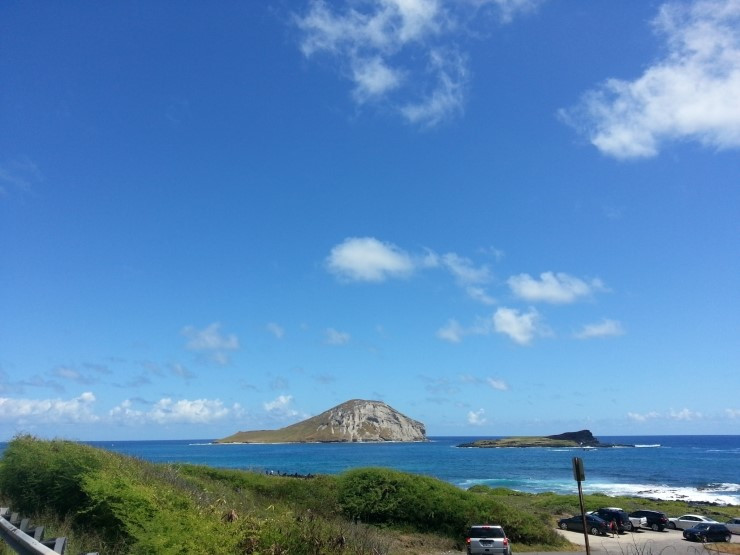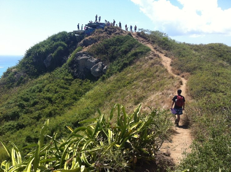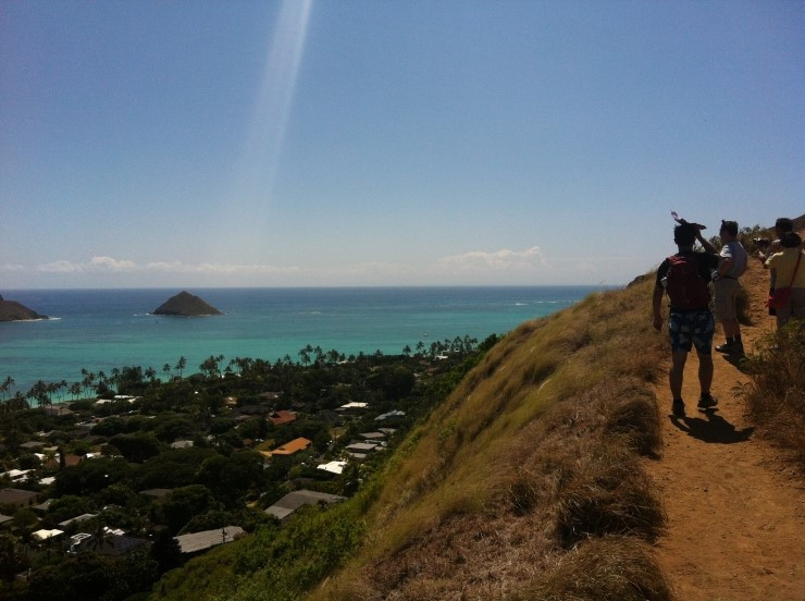 조금만 걸어 올라가도 카일루아의 상징이라 할 수 있는 쌍둥이 섬 모쿠루이와 모쿠이키가 보인다. 민둥산이라 경치를 보기엔 좋지만 그늘이 없다. 강렬한 햇빛을 조금이라도 가리면서 걸어간다.