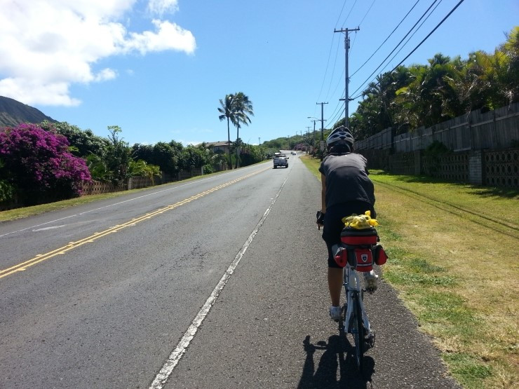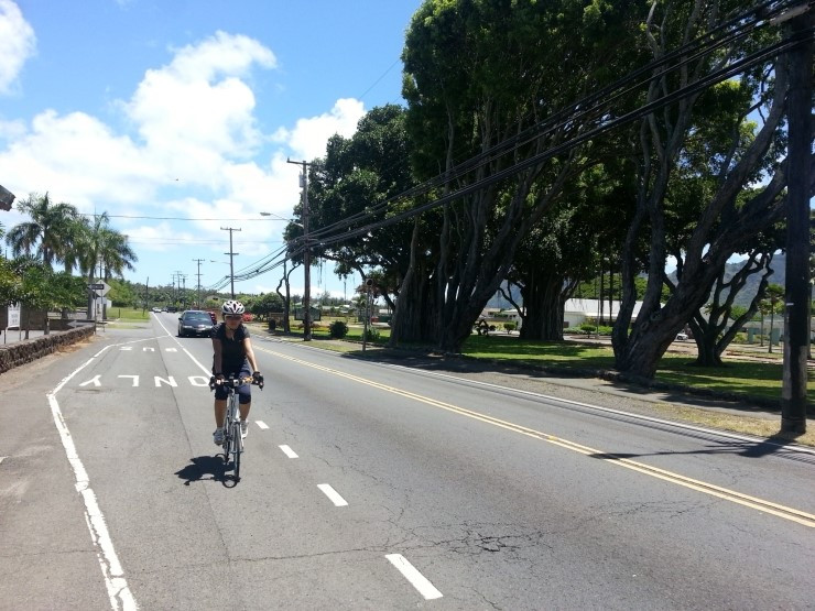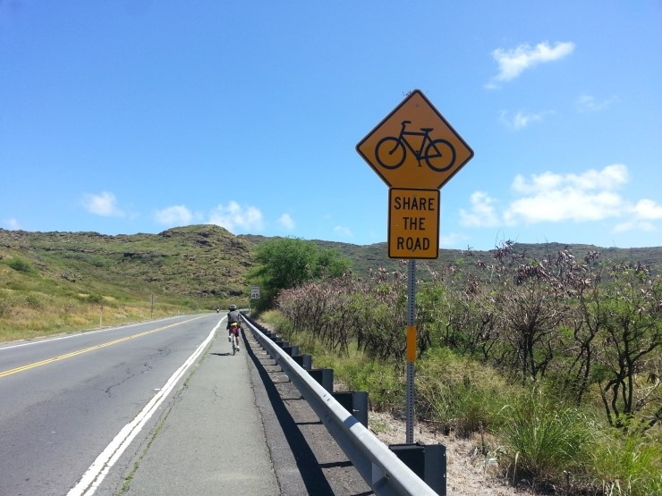 와이키키를 벗어나 코코헤드 옆으로 칼라니아나올레 하이웨이를 타고 간다. 약간 오르막이지만 경사가 심하지는 않다. 셰어 더 로드 표지판이 보이면 자전거 도로가 없어지고 차와 함께 달려야 한다는 뜻이다. 우리나라처럼 난폭하거나 위협적인 차들은 거의 없다.