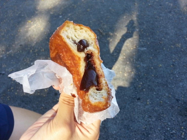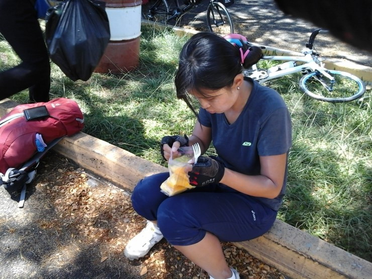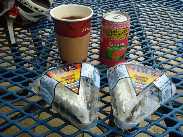 그중에서 가장 유명하다는 초콜릿 하우피아 크림파이를 두 개 구입해서 아침으로 먹는다. 달짝지근하고 독특한 맛과 향이 나는데 열량도 높아서 자전거 탈 때 먹기엔 좋다.