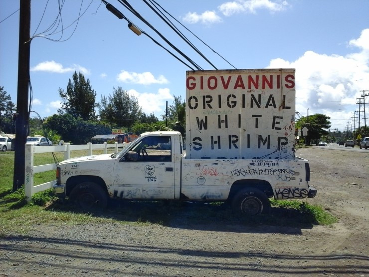 라이에에서 조금만 올라가면 카후쿠(Kahuku)다. 하와이가 새우 양식을 많이 하면서 새우 요리를 하는 트럭들이 유명하다. 원조 새우 트럭인 Giovannis Shrimp Truck에서 아침을 해결하기로 한다.