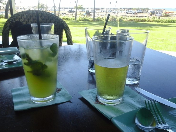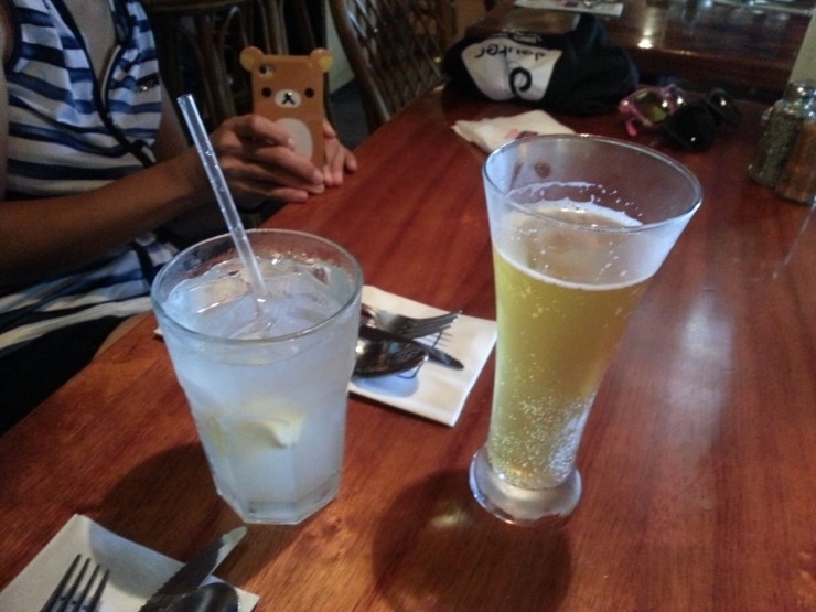 우선은 시원한 레모네이드와 코나 비키니 블론드 맥주 한 잔, 서로인 스테이크와 데리야키 스테이크로 점심을 먹는다.