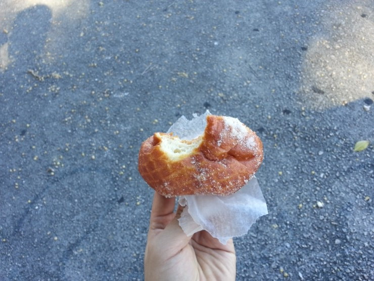 출발! 하기 전에 배부터 채우기로 한다. 출발점인 민박집에서 그리 멀지 않은 곳에 오아후의 유명한 빵집인 레오나드 베이커리에서 포르투갈식 도넛인 말라사다(Malasada)를 사 먹는다. 가게 안에는 테이블이 없으니 바로 맞은편에 작은 공원이 있어서 공원 벤치에 앉아서 먹는다. 단 것을 그리 좋아하지 않는 지니님이 꼭 먹어봐야 한다니 하와이 명물이긴 한가보다.