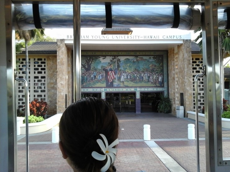 PCC의 하이라이트라 할 수 있는 저녁 공연까지 시간이 조금 남아서 투어버스를 타고 브링햄 영 대학 하와이 캠퍼스(BYUH)와 몰몬교 성전을 구경하기로 한다. 브링햄 영 대학 하와이 캠퍼스를 비롯해서 PCC도 모두 몰몬교 소유라고 하는데, 라이에에는 그만큼 몰몬교 신자들이 많다고 한다.