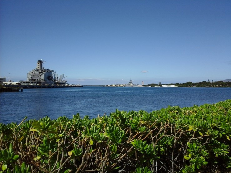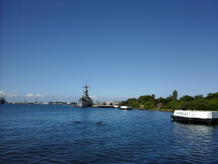 USS 애리조나 기념관에서 바다 쪽으로 퇴역하고 일반 관광객에게 개방된 전함 미주리호도 보인다. 다시 돌아오는 배를 타고 진주만 기념관으로 돌아온다.