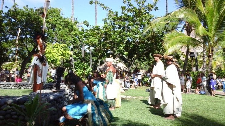 6개의 문화권마다 공연이나 이벤트 스케줄이 있기 때문에 무엇을 볼지를 정하고 시간에 맞춰 움직여야 한다. 일단 타히티 문화 쪽으로 간다. 타히티에서는 타이티 전통 결혼식을 보여준다.
